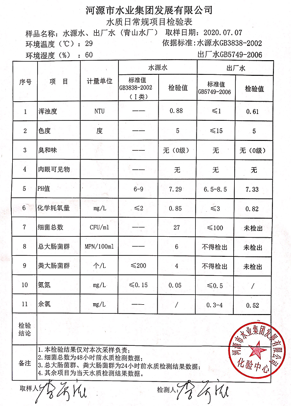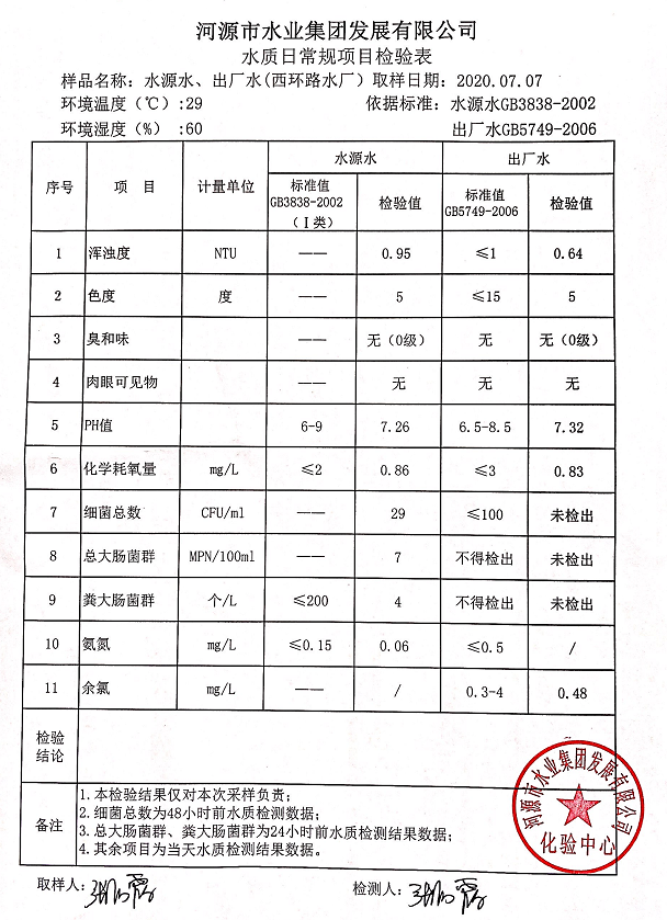 2020年7月7日水質(zhì)檢驗(yàn)報(bào)告