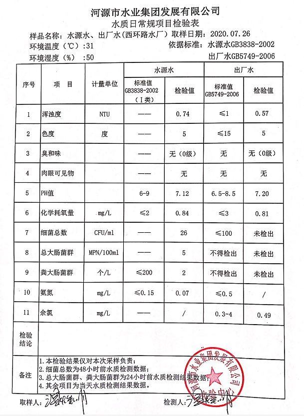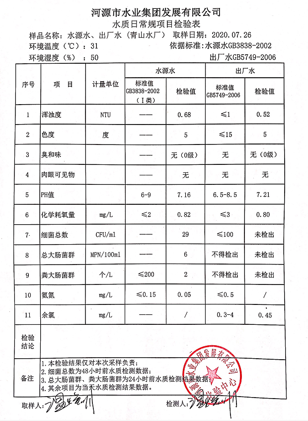 2020年7月26日水質(zhì)檢驗(yàn)報(bào)告