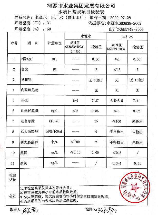 2020年7月28日水質(zhì)檢驗(yàn)報(bào)告