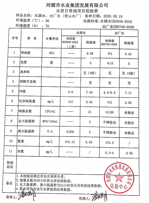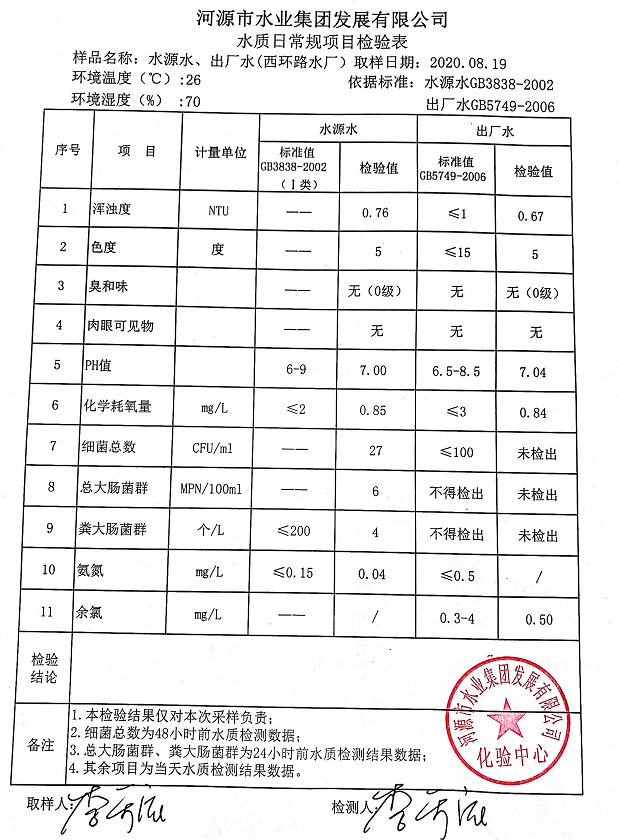 2020年8月19日水質(zhì)檢驗(yàn)報(bào)告