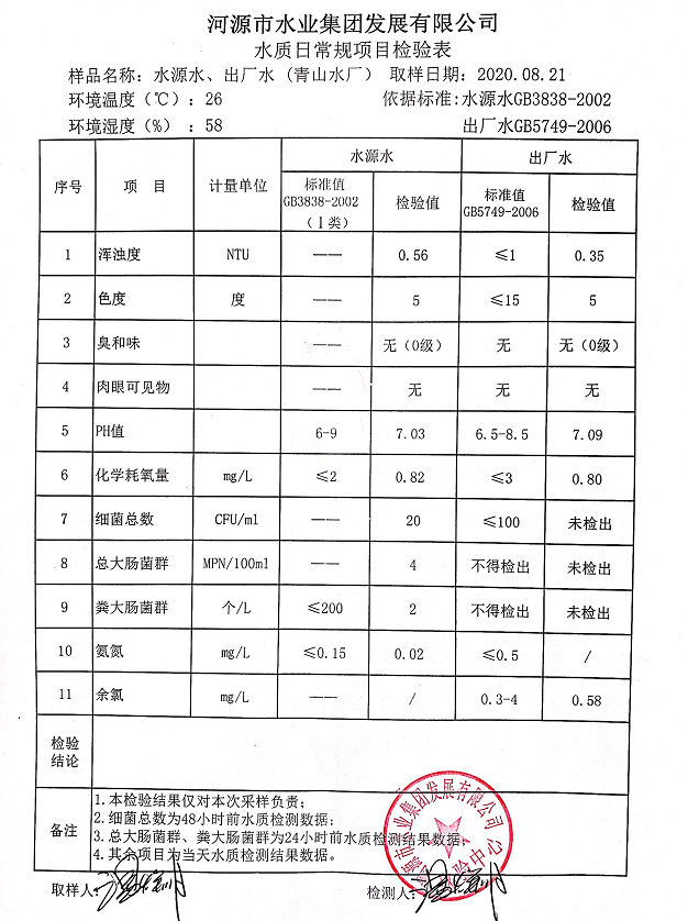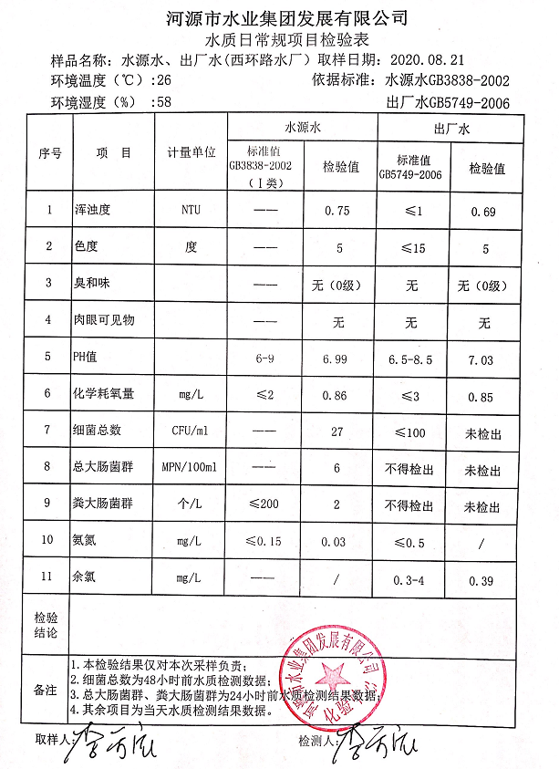 2020年8月21日水質(zhì)檢驗(yàn)報(bào)告