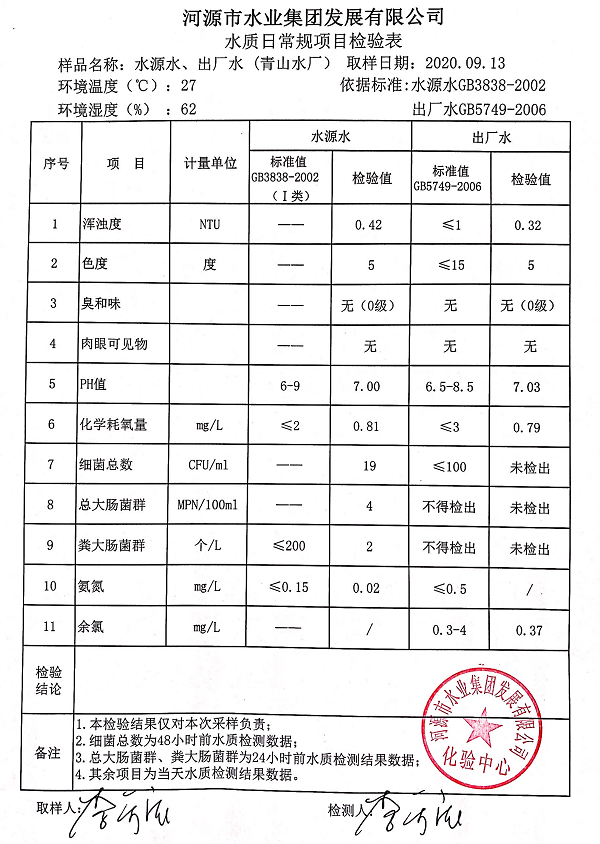 2020年9月13日水質(zhì)檢驗(yàn)報(bào)告