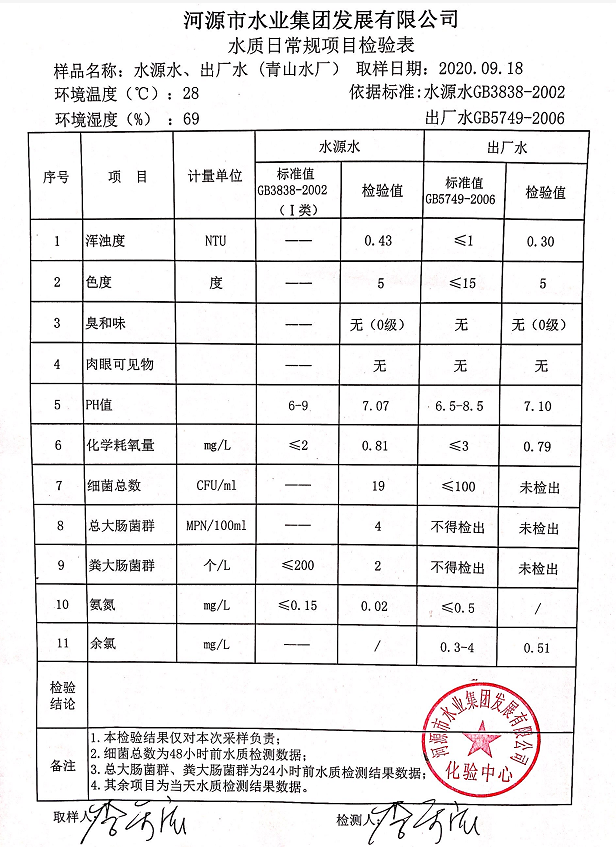 2020年9月18日水質(zhì)檢驗(yàn)報(bào)告