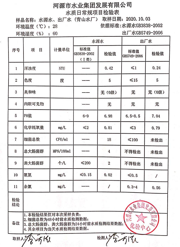 2020年10月3日水質(zhì)檢驗(yàn)報(bào)告