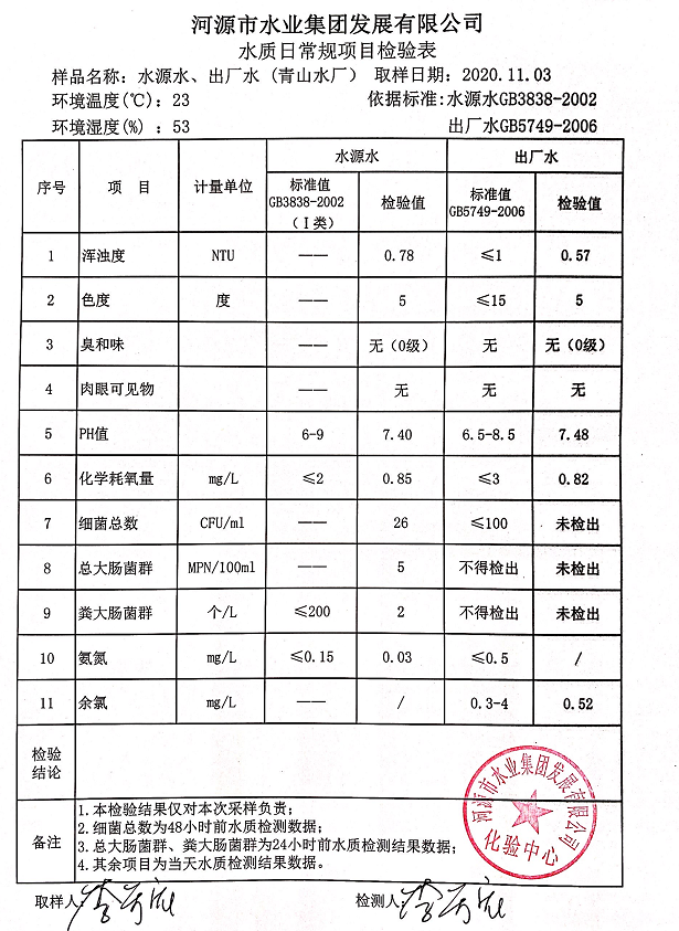2020年11月3日水質(zhì)檢驗(yàn)報(bào)告
