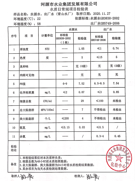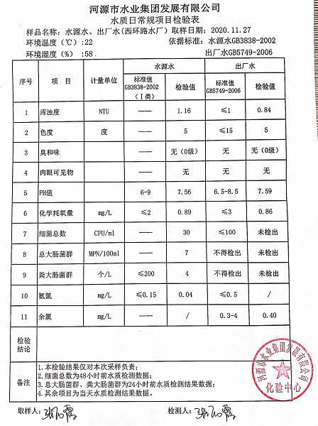 2020年11月27日水質(zhì)檢驗(yàn)報(bào)告
