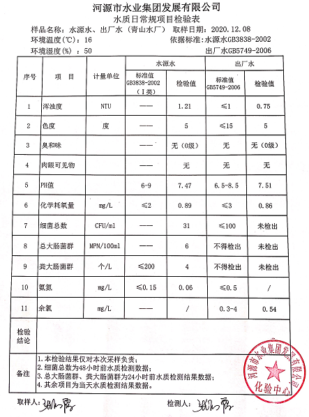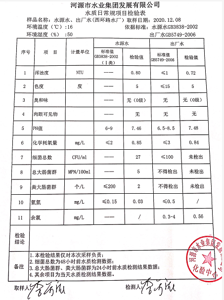 2020年12月8日水質(zhì)檢驗報告