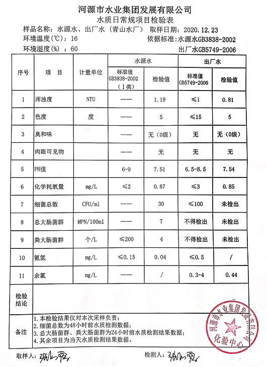2020年12月23日水質(zhì)檢驗(yàn)報(bào)告