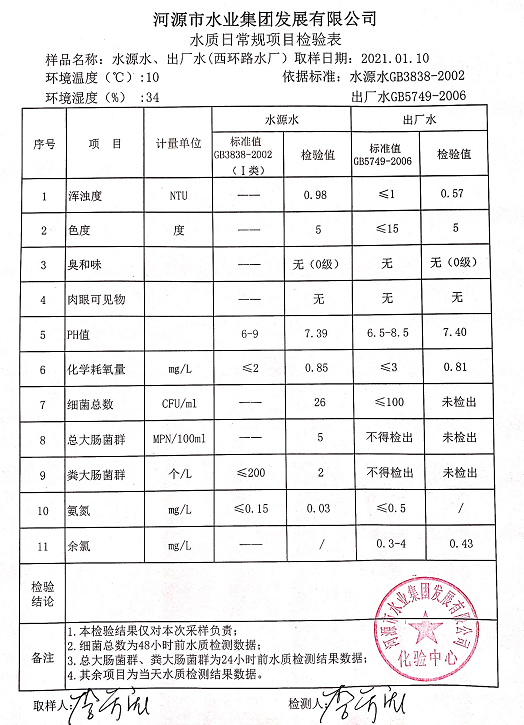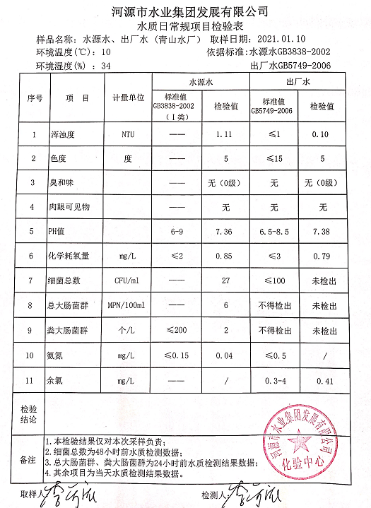 2021年1月10日水質(zhì)檢驗(yàn)報(bào)告