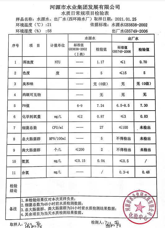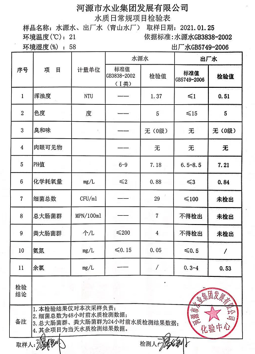 2021年1月25日水質(zhì)檢驗報告