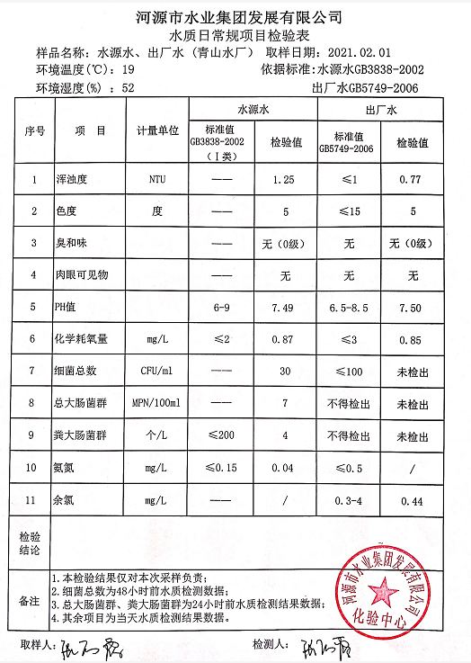 2021年2月1日水質(zhì)檢驗報告