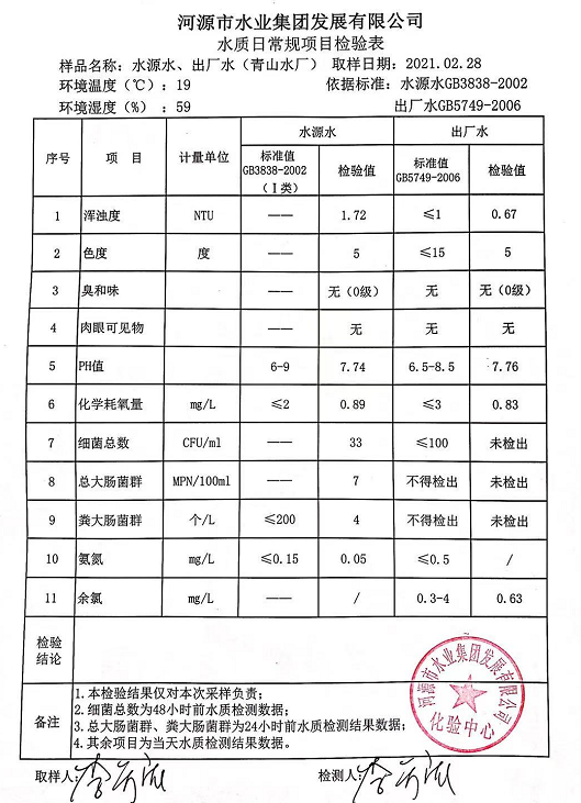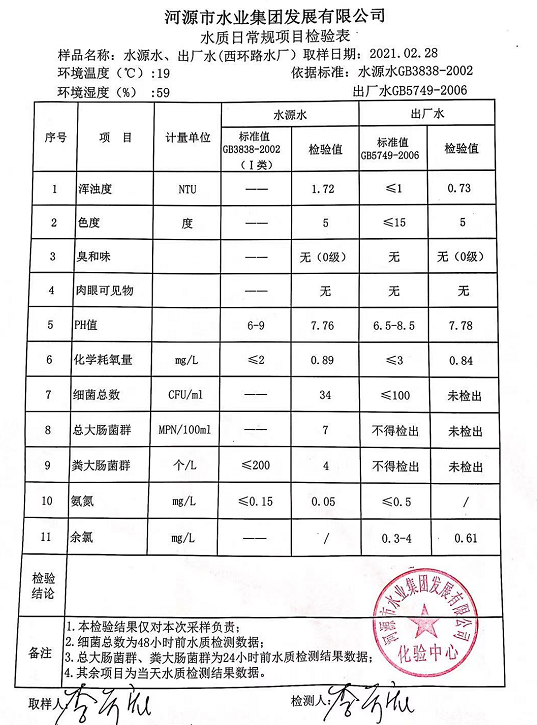 2021年2月28日水質(zhì)檢驗(yàn)報(bào)告