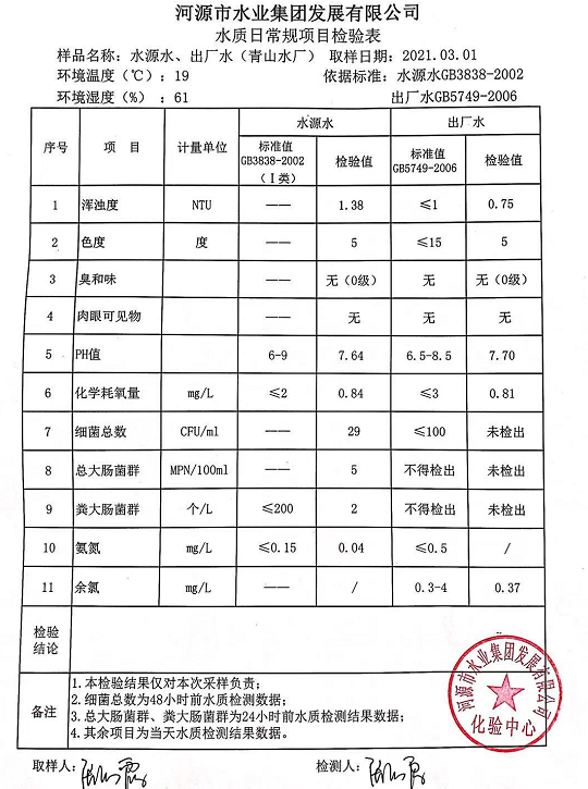 2021年3月1日水質(zhì)檢驗(yàn)報(bào)告