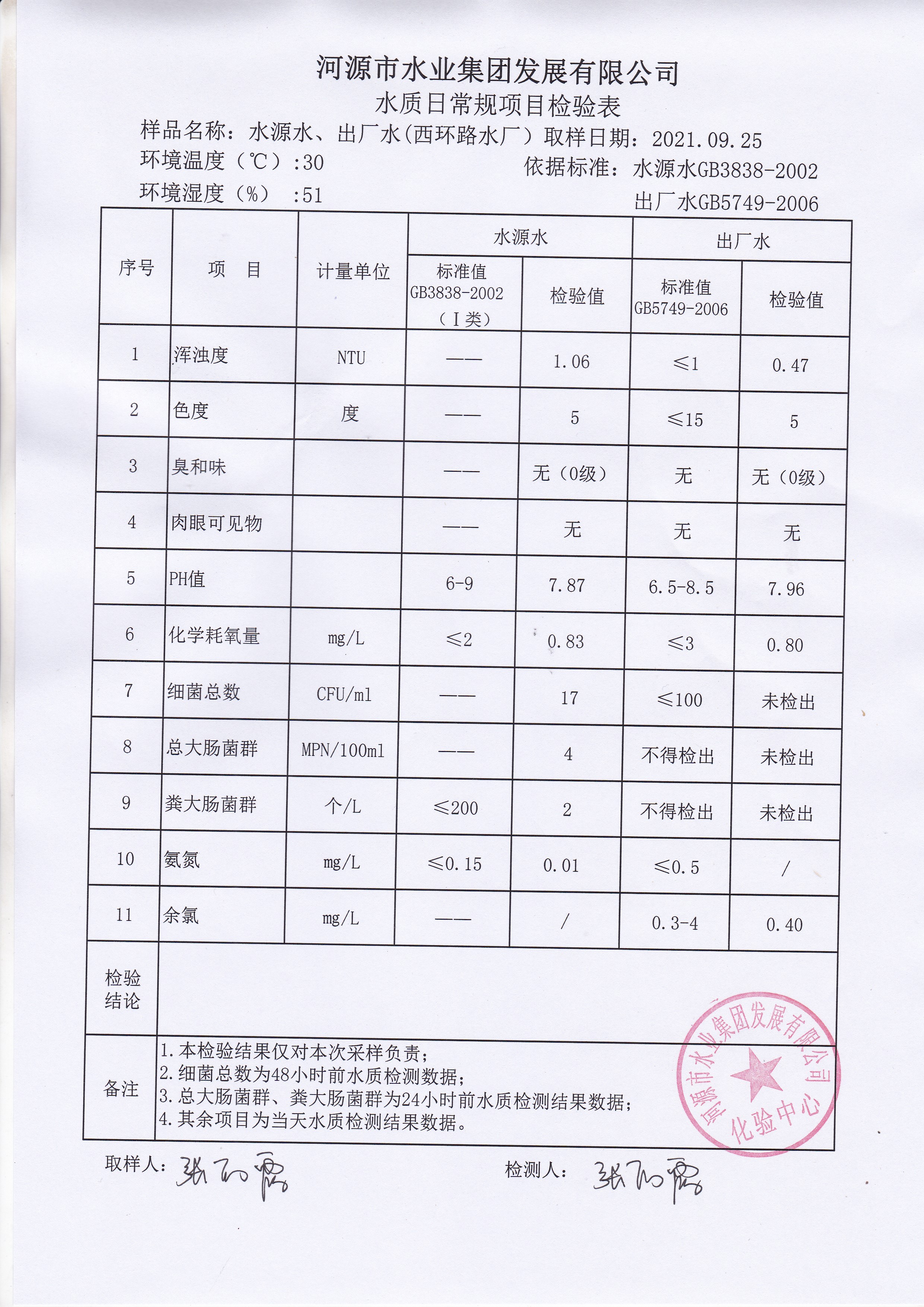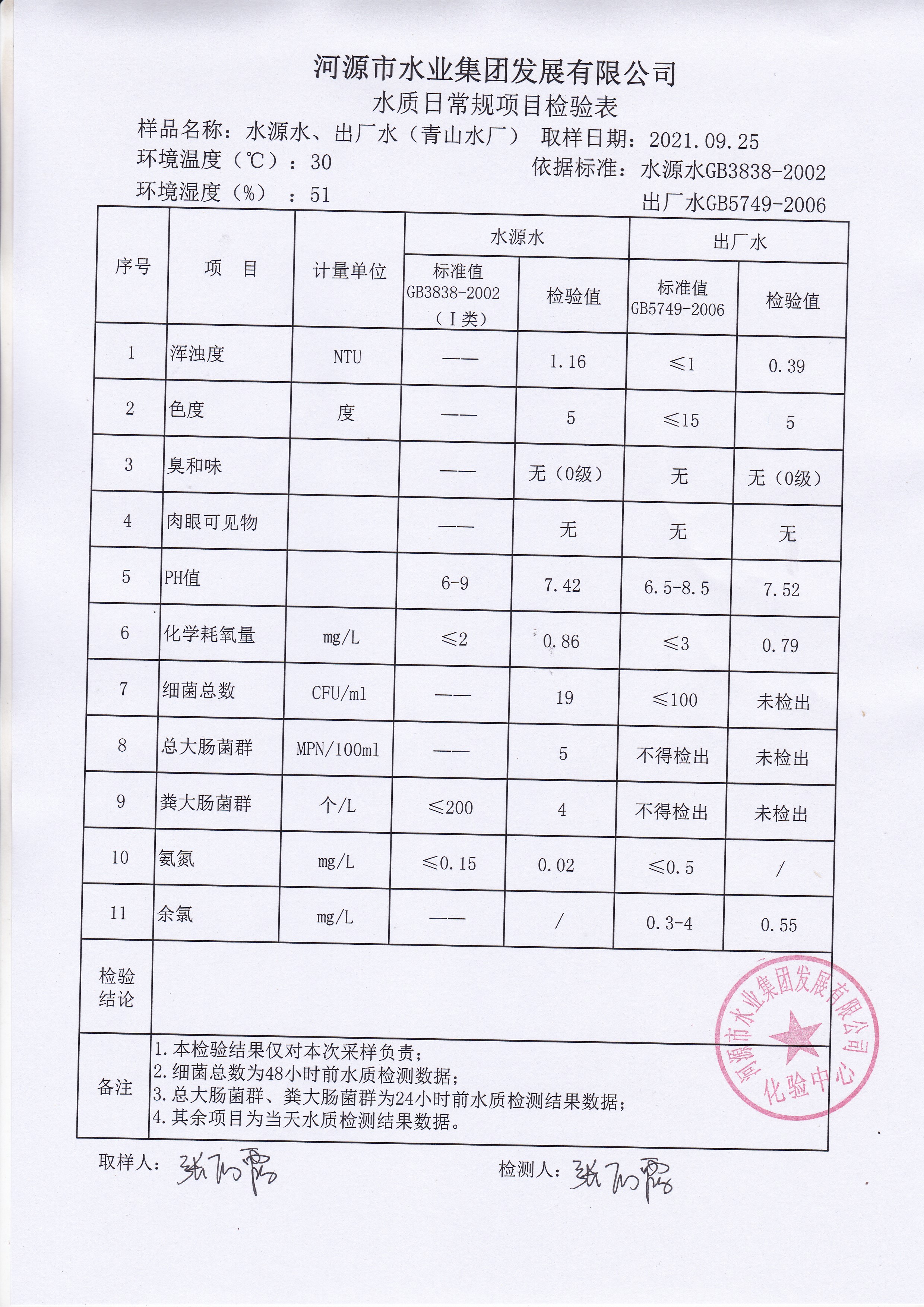 2021年9月25日水質(zhì)檢驗(yàn)報(bào)告
