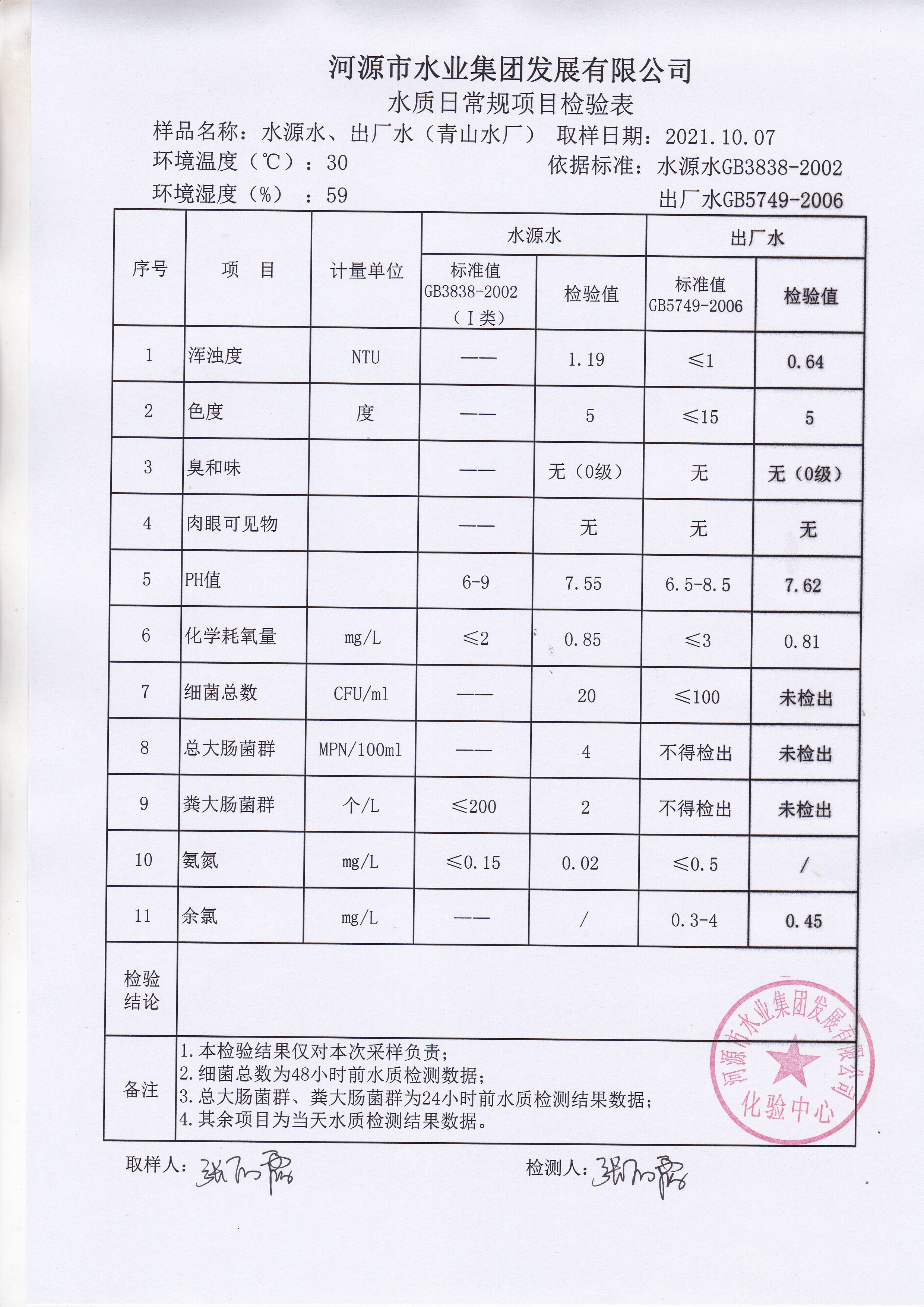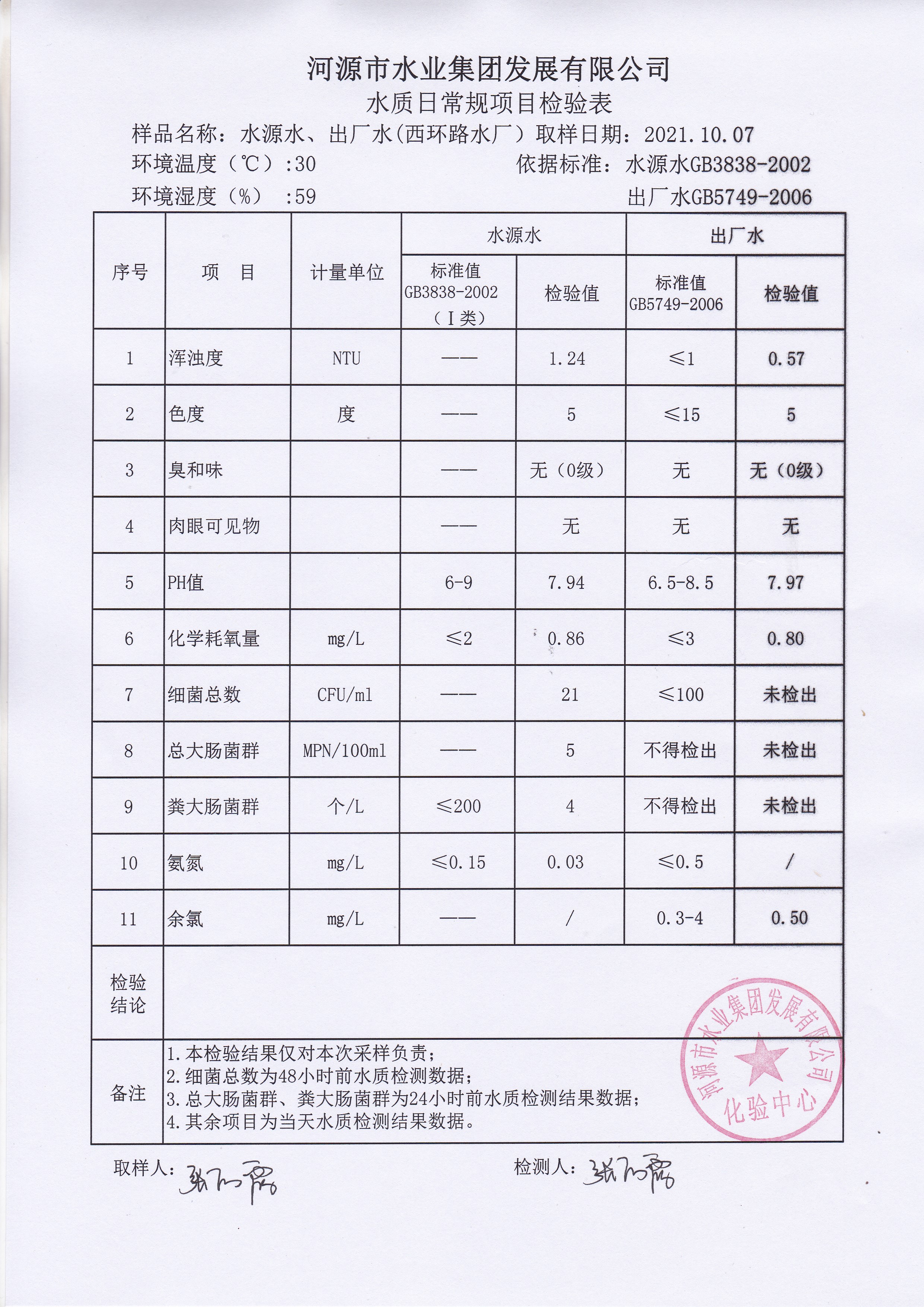2021年10月7日水質(zhì)檢驗(yàn)報(bào)告
