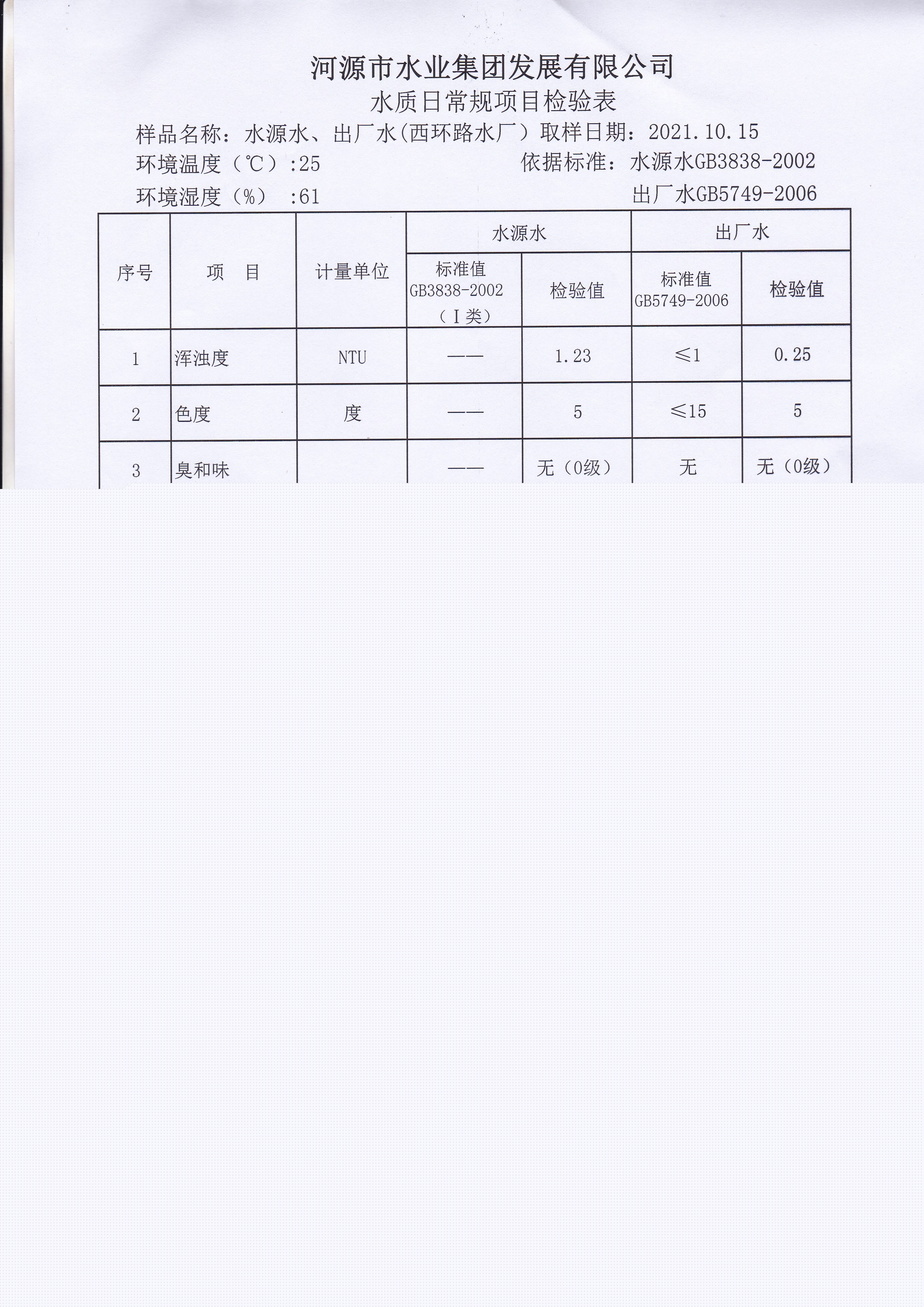 2021年10月15日水質(zhì)檢驗(yàn)報(bào)告