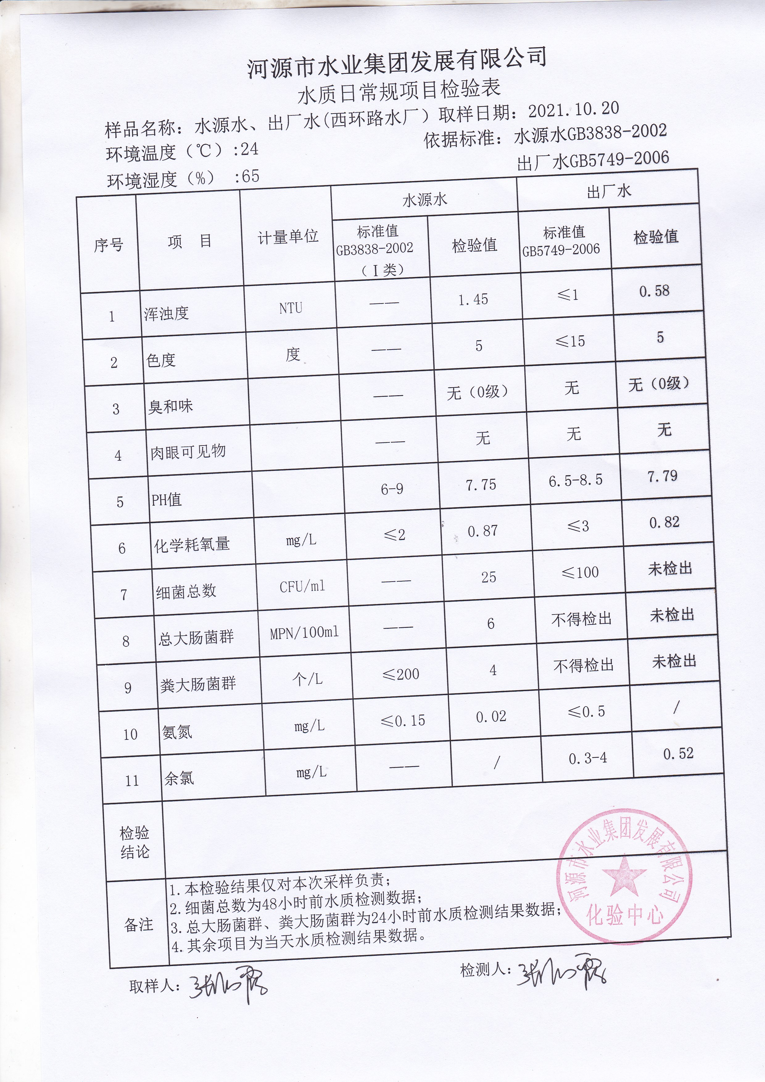 2021年10月20日水質(zhì)檢驗(yàn)報(bào)告