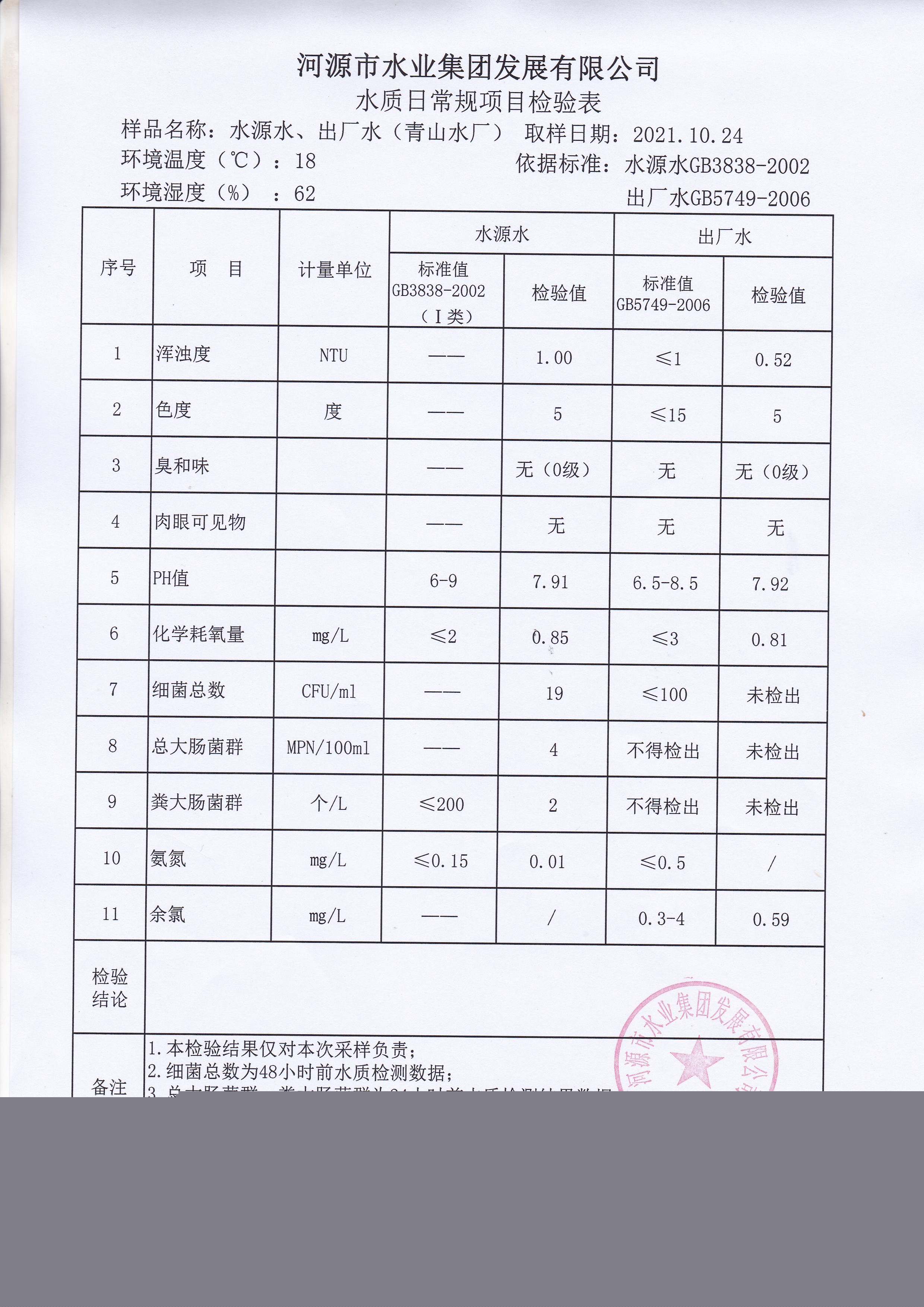 2021年10月24日水質(zhì)檢驗(yàn)報(bào)告