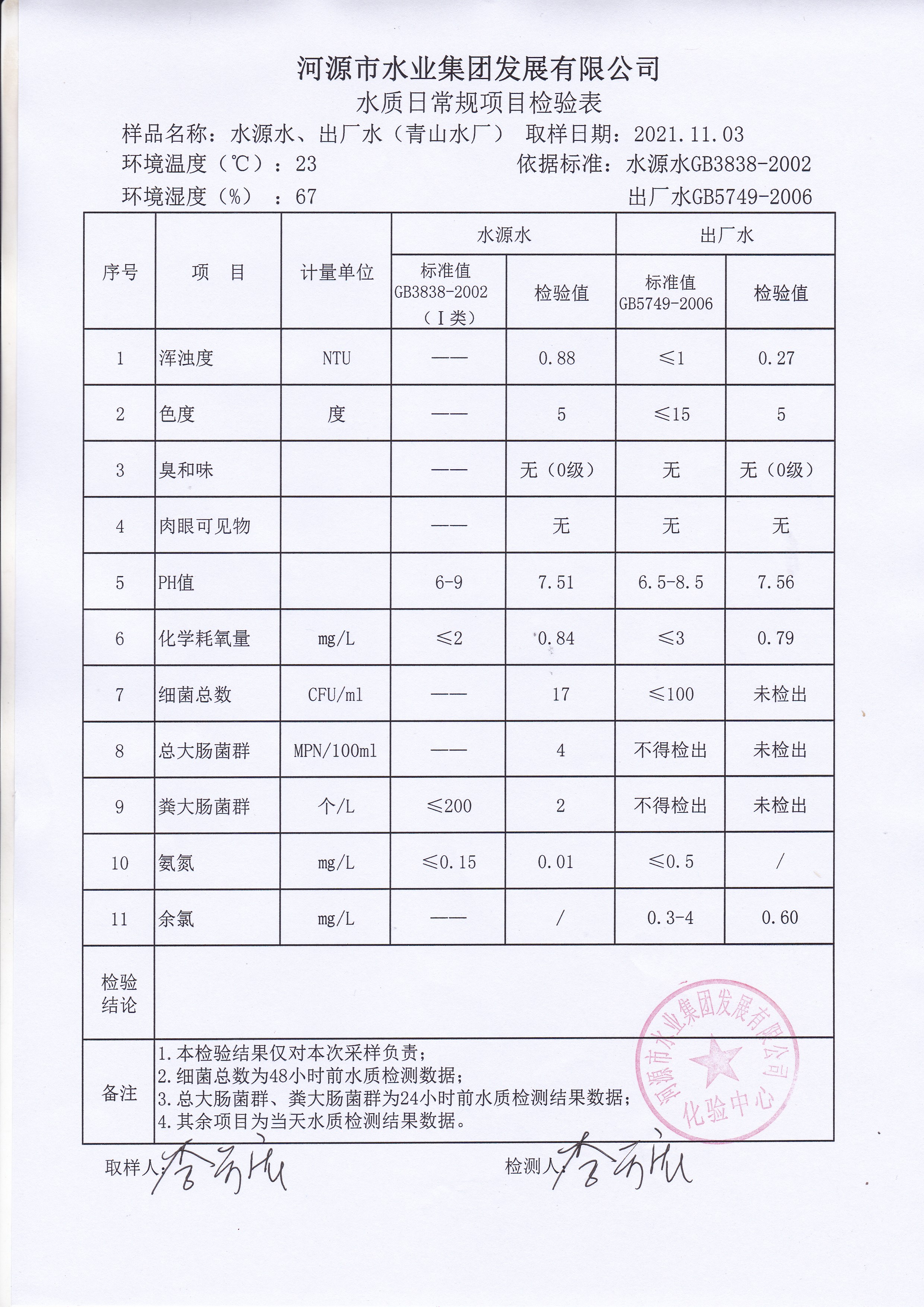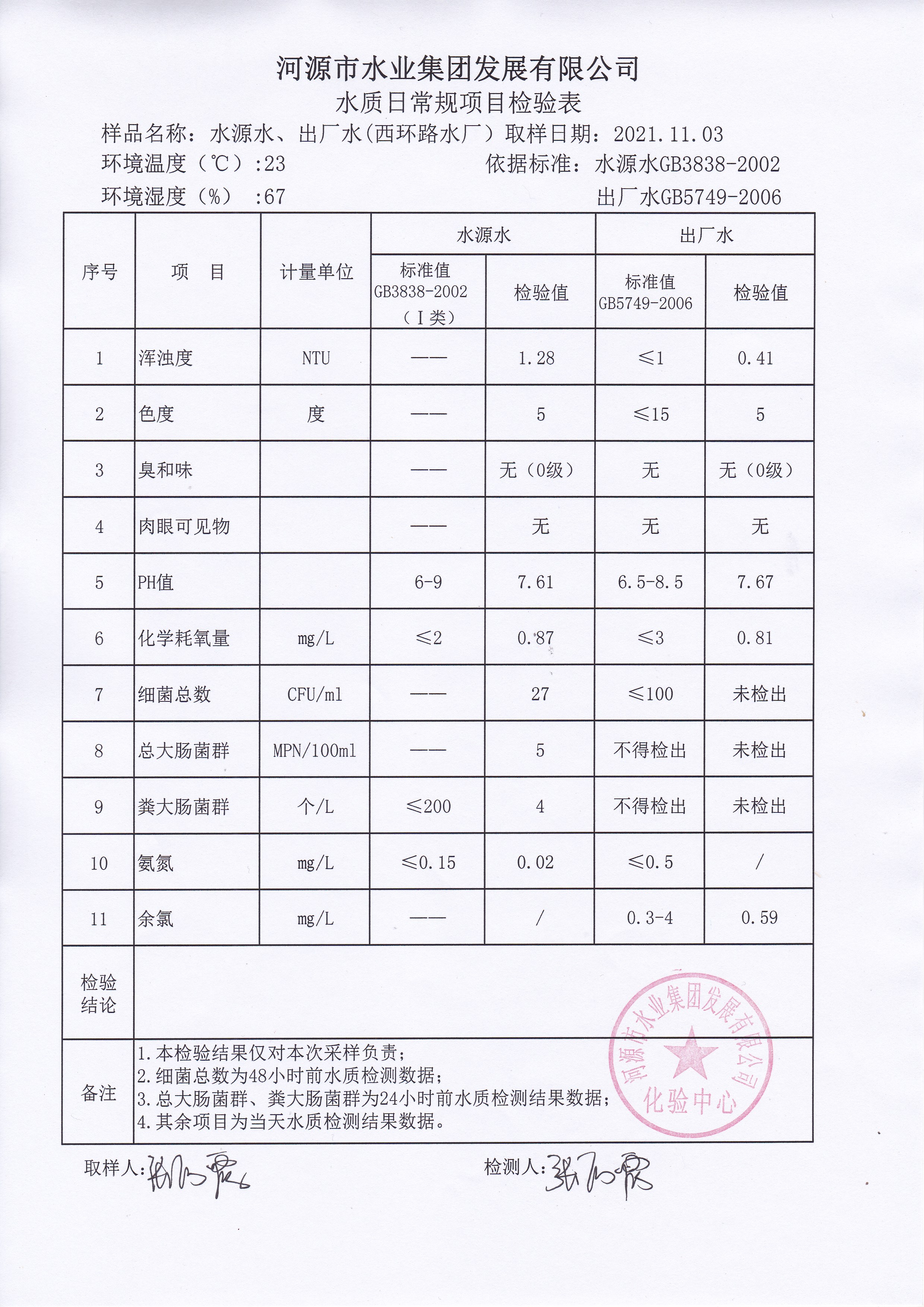 2021年11月3日水質(zhì)檢驗(yàn)報(bào)告